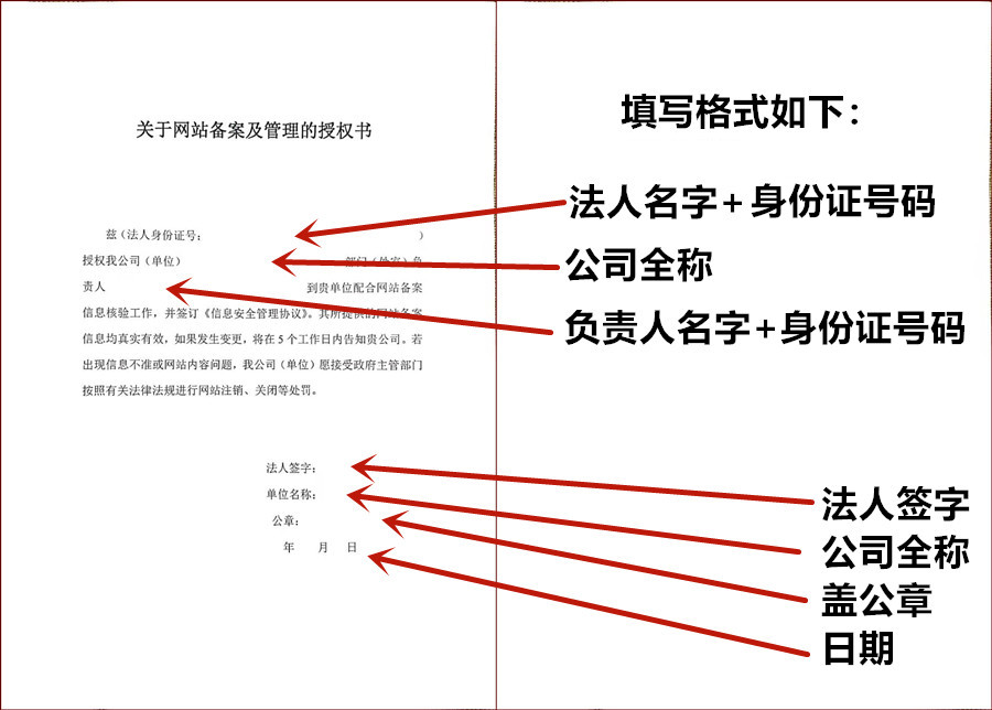 四:网站备案授权书(这个阿里云备案对接人_沈朋会帮你写好:需要个法人身份证号码)